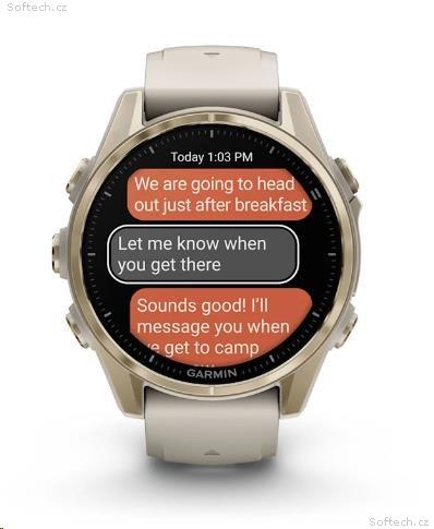 Na hodinkách můžete přijímat e-maily, textové zprávy a upozornění na spárovaném telefonu Android nebo Apple. Hodinky rovněž podporují platby Garmin Pay, abyste se při svých dobrodružstvích mohli vydat kamkoliv a nestarat se o to, že jste něco zapomněli doma. S hodinkami Garmin fénix 8 máte totiž vždy všechno důležité po ruce - na svém zápěstí.