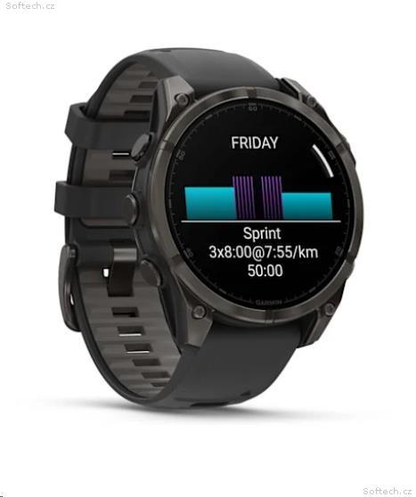 Chytré hodinky Garmin fénix 8 přicházejí s mnoha výkonnostními funkcemi, které vám pomůžou ke zlepšení kondice a k dosažení skvělých výsledků. Skóre vytrvalosti využívá dynamického měření vaší kondice, předpověď výsledků odhaduje cílový čas zvolené aktivity, funkce FacePro navrhne ideální tempo, funkce ClimbPro varuje před nadcházejícím stoupání a převýšení, tempo s korekcí sklonu vám pomůže dosáhnout stejnoměrného tempa, ať už se vydáte do kopců nebo po rovině, připravenost k tréninku vám napoví, zda byste se dnes měli zaměřit na intenzivní trénink nebo naopak zvolnit, stav tréninku nabídne přehled o skladbě tréninku a míře zátěže, automatický přechod vám umožní plně se soustředit na pohyb bez nutnosti přepínání jednotlivých aktivit, skóre běhu do kopce, denní doporučené tréninky, doba regenerace přináší tipy na trénink i odpočinek, dynamika běhu analyzuje kadenci a délku kroku, dobu kontaktu se zemí a další.