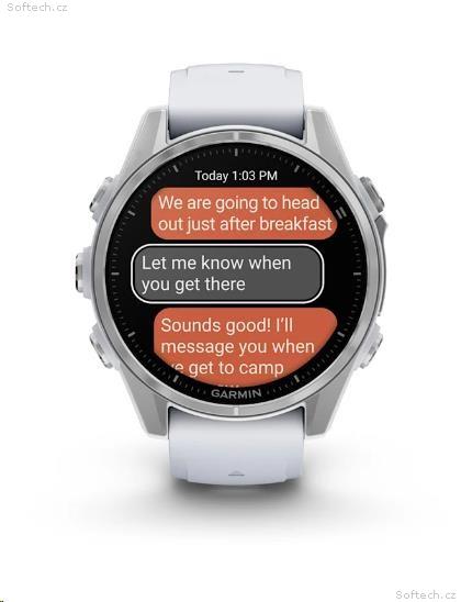 Na hodinkách můžete přijímat e-maily, textové zprávy a upozornění na spárovaném telefonu Android nebo Apple. Hodinky rovněž podporují platby Garmin Pay, abyste se při svých dobrodružstvích mohli vydat kamkoliv a nestarat se o to, že jste něco zapomněli doma. S hodinkami Garmin fénix 8 máte totiž vždy všechno důležité po ruce - na svém zápěstí.