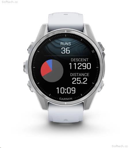 Chytré hodinky Garmin fénix 8 přicházejí s mnoha výkonnostními funkcemi, které vám pomůžou ke zlepšení kondice a k dosažení skvělých výsledků. Skóre vytrvalosti využívá dynamického měření vaší kondice, předpověď výsledků odhaduje cílový čas zvolené aktivity, funkce FacePro navrhne ideální tempo, funkce ClimbPro varuje před nadcházejícím stoupání a převýšení, tempo s korekcí sklonu vám pomůže dosáhnout stejnoměrného tempa, ať už se vydáte do kopců nebo po rovině, připravenost k tréninku vám napoví, zda byste se dnes měli zaměřit na intenzivní trénink nebo naopak zvolnit, stav tréninku nabídne přehled o skladbě tréninku a míře zátěže, automatický přechod vám umožní plně se soustředit na pohyb bez nutnosti přepínání jednotlivých aktivit, skóre běhu do kopce, denní doporučené tréninky, doba regenerace přináší tipy na trénink i odpočinek, dynamika běhu analyzuje kadenci a délku kroku, dobu kontaktu se zemí a další.