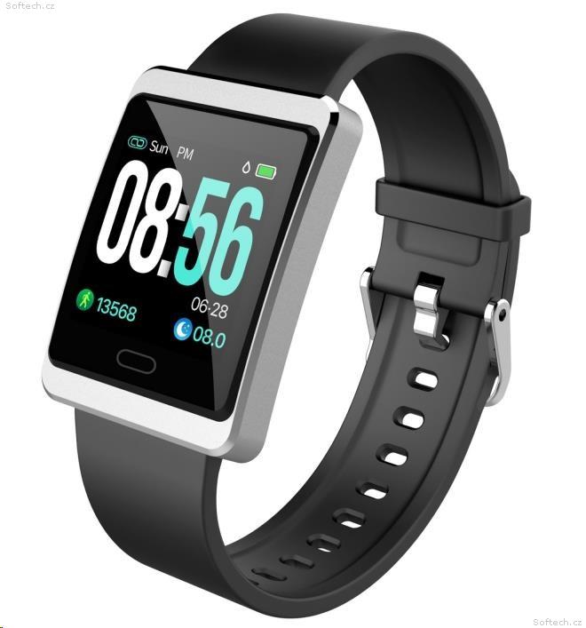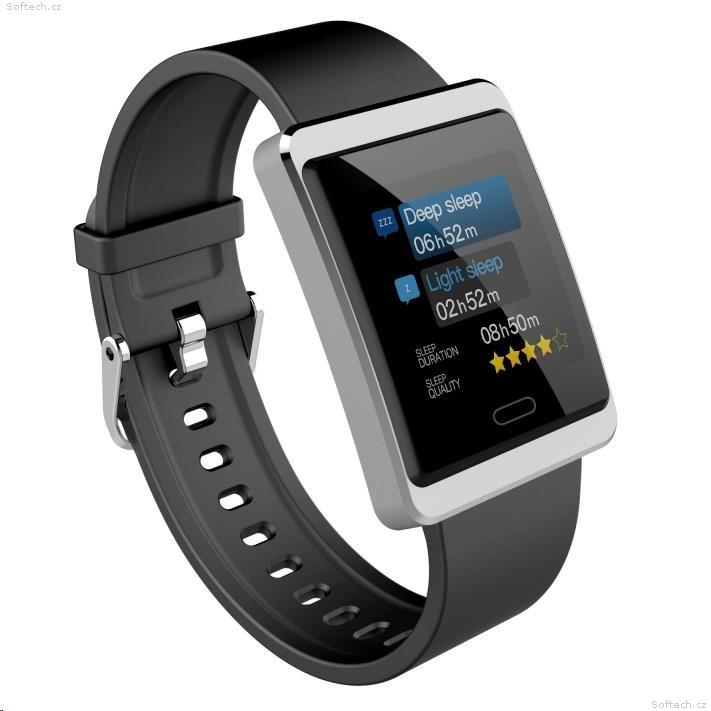 - zobrazení na náramku - datum, průběh plnění stanoveného cíle, stav baterie, ikona připojení k mobilnímu zařízení, aktuální čas, počet kroků, kalorie, tepová frekvence, krevní tlak, doba spánku