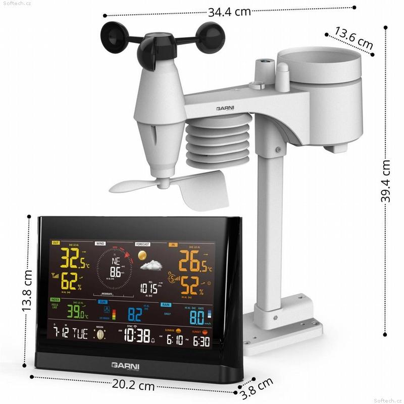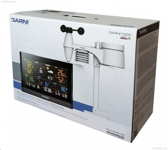 Wi-Fi meteorologická stanice model GARNI 1025 Arcus 2GEN s integrovaným bezdrátovým čidlem 7-v-1, která je vybavena mnoha funkcemi shromažďuje přesné a podrobné údaje o počasí. Integrované bezdrátové čidlo pracuje na frekvenci 868 MHz a měří vnější teplotu a relativní vlhkost, rychlost a směr větru, dešťové srážky, barometrický tlak, UV index a intenzitu slunečního záření. Výrobek používá vysoce přesná švýcarská čidla SENSIRION a umožňuje kalibraci některých meteorologických veličin.