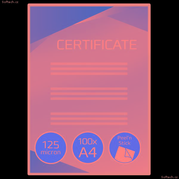 Laminovací kapsy GBC Peel n’ Stick jsou dokonale vhodné pro tvorbu neodkladných, profesionálních a přitažlivých cedulí. Lepicí zadní strana přilne k většině materiálů, včetně skla, kovu a lepenky. Stačí jednoduše odtrhnout krycí fólii a odhalit samolepicí vrstvu. Tloušťka 2 × 125 mikronů, lesklé provedení. Formát A4. Balení: 100 kusů.