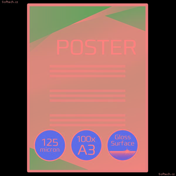 Praktické řešení pro každodenní použití chránící a zdokonalující hodnotné listy prezentací, referenčních seznamů, produktových listů, upozornění apod. Lesklé provedení, tloušťka 2 × 125 mikronů. Formát A3. Balení: 100 kusů. Určené pro dokonalé umístění standardních listů A3 s dostatečnými okraji pro snadné zarovnání listů, zcela voděodolné Vysoký lesk Zvýrazňují a prohlubují tištěné barvy Dlouhodobá odolnost Laminované dokumenty by měly vydržet léta, v závislosti na okolních podmínkách a tloušťce fólie Přizpůsobení velikosti a tvaru listu: laminované dokumenty lze snadno oříznout