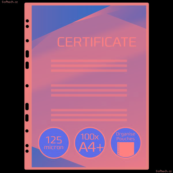 Laminovací kapsy GBC Organise jsou ideální pro prezentace a archivování ve standardních kroužkových pořadačích, lze je však použít , a slouží k ochraně široké škály dokumentů, děrovaných i neděrovaných. Kapsy mají lesklou povrchovou úpravu a vnitřek z polyethylenu s vysokou hustotou, a proto dokonale přilnou i k plnobarevným výtiskům. Formát A4+, tloušťka 2 × 125 mikronů, lesklé provedení. Balení: 100 kusů. Vejdou se do standardních desek rychlovazačů a zaoblené rohy zmenšují nebezpečí poškození Univerzální formáty děrování Lze je použít pro evropskou kroužkovou rychlovazbu formátů A4+ se 2/4 otvory (rozteč 80 mm) a standardní americkou vazbu se 3 otvory a evropskou vazbu A5 se 3 otvory Děrované nebo neděrované formáty Ideální pro archivování ve standardních kroužkových pořadačích Povrchová úprava s vysokým leskem nebo matná s vnitřkem z polyethylenu s vysokou hustotou