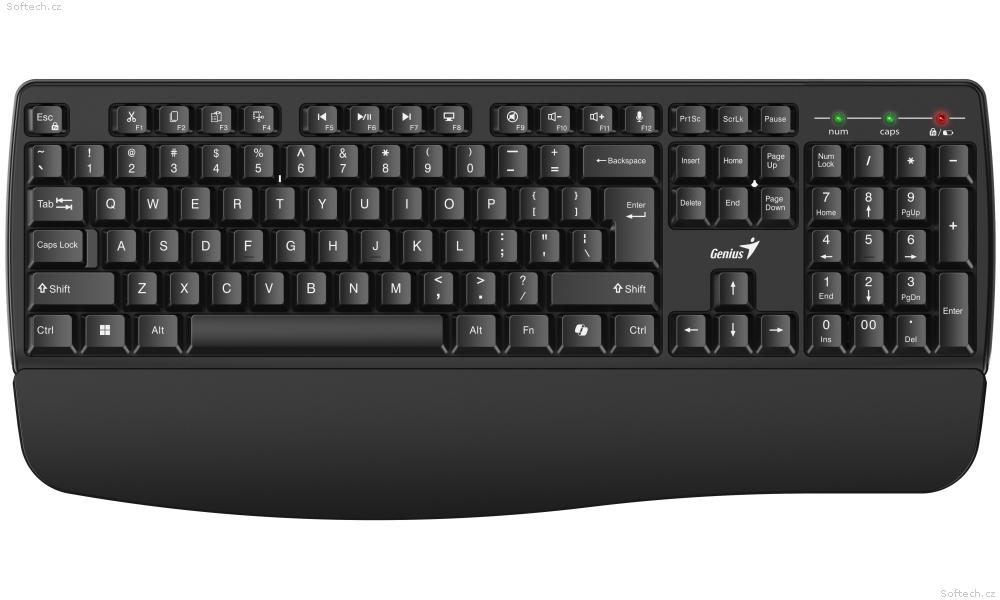 Díky integrované opěrce zápěstí poskytuje KB-7123 stabilní oporu a umožňuje udržovat ruku v příjemné a uvolněné poloze při psaní, což výrazně zvyšuje komfort při dlouhodobém používání.
