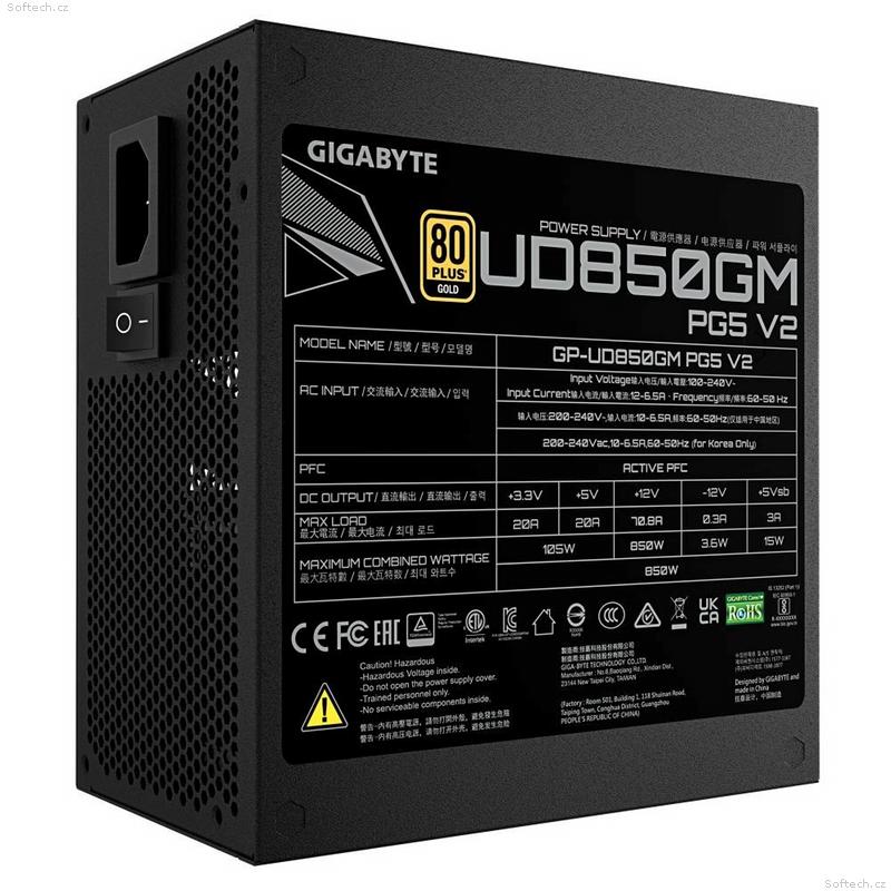 • GIGABYTE zdroj UD850GM PG5 V2 850W, 120mm, Plně mo
