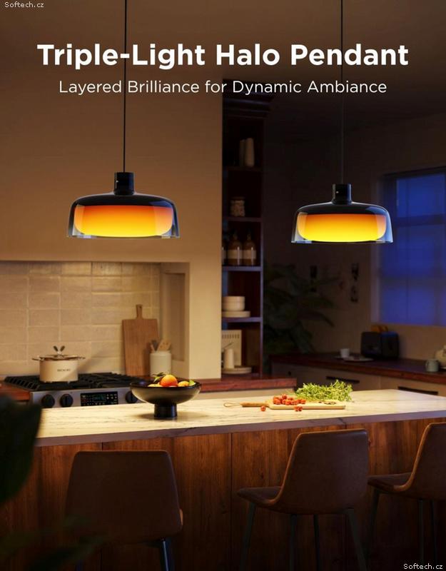 Govee Pendant Light je vybaven třístupňovým kruhovým osvětlením, které poskytuje 360° osvětlení s možností nezávislého ovládání každé zóny. Světlo je nastavitelné od teplé bílé 2700 K po studenou 6500 K a nabízí vysoký index podání barev (CRI 95). Instalace lustru je jednoduchá a díky nastavitelnému závěsnému kabelu až 150 cm si jej snadno přizpůsobíte výšce svého stropu.