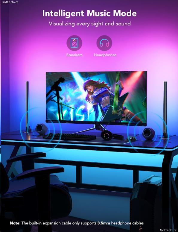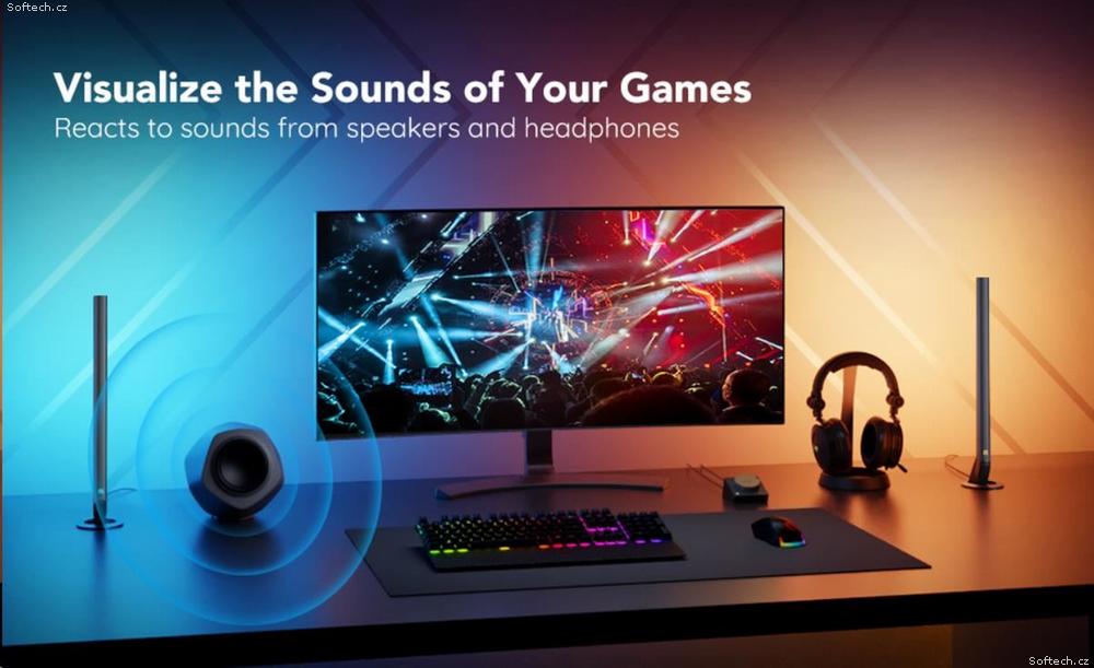 Vylepšete své herní, filmové a hudební zážitky s chytrými světelnými panely Govee Smart Gaming. 16 milionů barev s 62 režimy a 8 režimů pro synchronizaci s hudbou povznesou zážitek ze sledování televize nebo hraní her na novou úroveň. Ovládají se hlasem přes Siri, Amazon Alexa nebo Google Assistant, přes aplikaci nebo přes Smart Dual ovladač. Nebudete proto ani muset vstávat z gauče. Barevné podsvícení opticky zvětšuje obraz, šetří oči a má živostnost až 50.000 hodin.