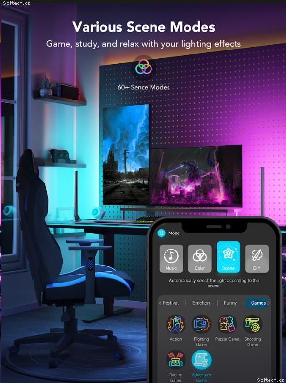 16 milionů barev a 62 scénických režimů pro ideální osvětlení a navození atmosféry