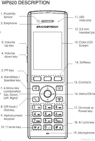 Bezdrátový 2linkový Wi-Fi telefon WP820 vám umožní spojení s ostatními síťovými prvky výrobce Grandstream a vytvoří buňkový systém s výrazně nižšími náklady, než je tomu například u současných DECT systémů. Wi-Fi ručka narozdíl od DECT nepotřebuje svoji základnu, pracuje totiž na Wi-Fi síti. Tu si buď můžete vytvořit pomocí síťových prvků z řady GWN, nebo můžete využít již existující Wi-Fi síť. Další ze zajímavých funkcí modelu WP820 je podpora videohovoru. Ten můžete přijmout na 2,4" TFT barevném LCD displeji s rozlišením 240 x 320. K dispozici je duální mikrofon s AEC technologií pro redukci šumu pro zvuk v HD kvalitě. Pro ještě lepší kombinaci funkcí a flexibilitu disponuje zařízení integrovaným Bluetooth 4.2. Baterie s kapacitou 1500 mA nabízí dlouhou výdrž, bez nabití vydrží až 150 hodin v pohotovostním režimu a zvládne až 7,5 hodin hovoru.