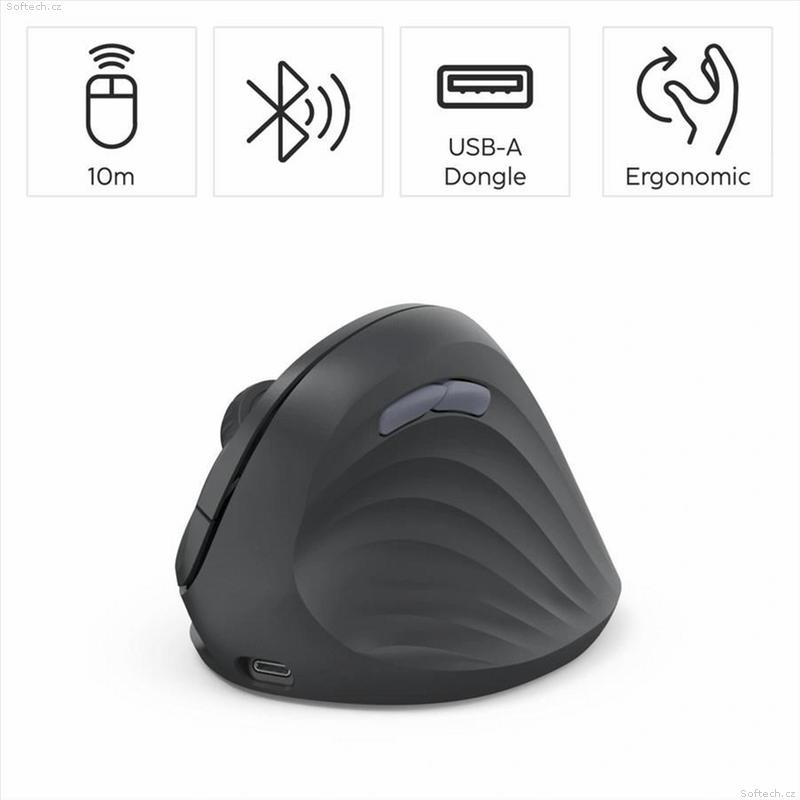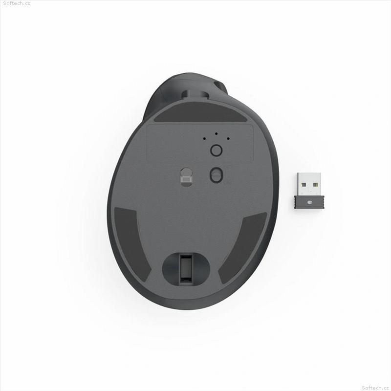 - 8tlačítková ergonomická bezdrátová optická myš s volitelným připojením na tři zařízení: 1x bezdrátový USB přijímač a 2x Bluetooth