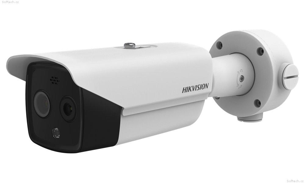Bezpečnostní termální venkovní IP kamera s duálním snímáním v termo (160 x 120) a vizuální (4 Mpx - 2688 x 1520) oblasti. Rozlišovací schopnost pod 40 mK, objektiv f = 9,7 mm (15,96° x 12,00°), vizuální f = 8 mm (39,42° x 22,14°), podpora WDR (120 dB), IR přísvit do 40 m.