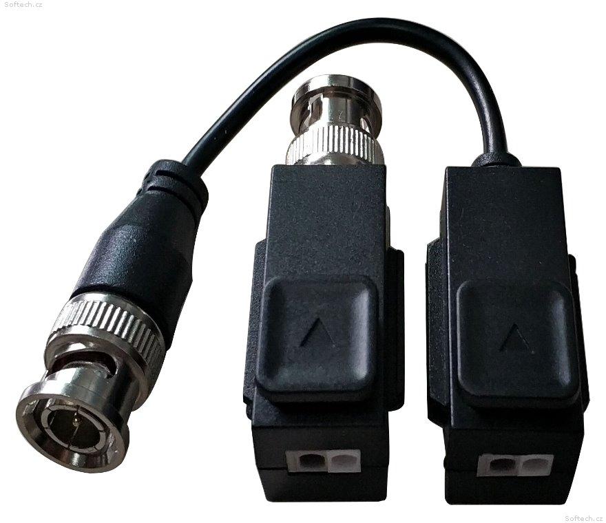 Typ: pasivní, 1kanálový Dosah: 250 m, 150 m s PoC napájením Konektory: BNC, pružinová svorkovnice Impedance: BNC 75 Ω, UTP 100 Ω Rozměry: 50 x 22 x 20 mm (150 x 22 x 20 mm balun s kabelem) Hmotnost: 32 g