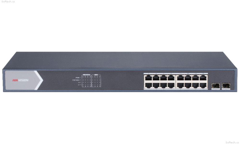 Hikvision DS-3E1518P-SI je speciálně navržený 19" Rackmount PoE switch pro monitoring sítě, switching a napájení aktivních prvků. Tento switch obsahuje 16x 10/100/1000 Mbps LAN portů a 2x SFP. Switch podporuje 802.3af/at (max.30W/port) PoE na všech ethernetových portech s celkovým budgetem 225W a na všech těchto portech podporuje i funci Long Range PoE, což umožňuje napájení a komunikaci na vzdálenost až 300m, čehož je dosaženo díky ponížení linkové rychlosti na 10Mbps. Switch je spravovatelný přes iVMS-4200.