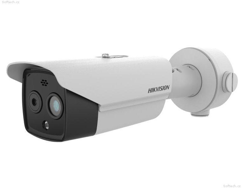 Bezpečnostní termální venkovní IP kamera s duálním snímáním v termo (256 × 192) a vizuální (2688 × 1520) oblasti. Rozlišovací schopnost pod 40 mK, objektiv f = 3,6 mm (50° × 37,3°), vizuální f = 4,3 mm (84° × 43,1°), podpora WDR (120 dB), IR a bílý LED přísvit do 30 m.