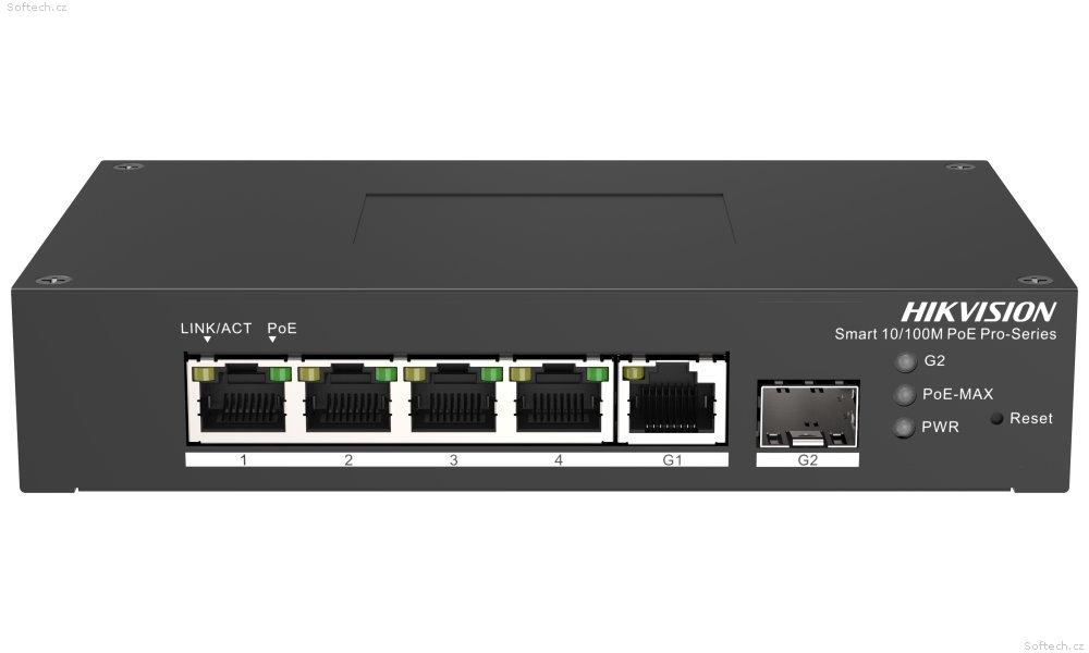 Kompaktní spravovatelný (managed) 6portový PoE switch pro napájení IP kamer či jiných zařízení s podporou PoE. Nabízí PoE výstup 4× 802.3af/at (max. 30 W/port) s celkovým výkonem až 60 W a kapacitu 4,8 Gbps.