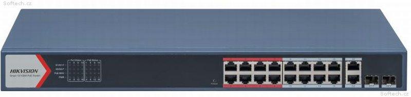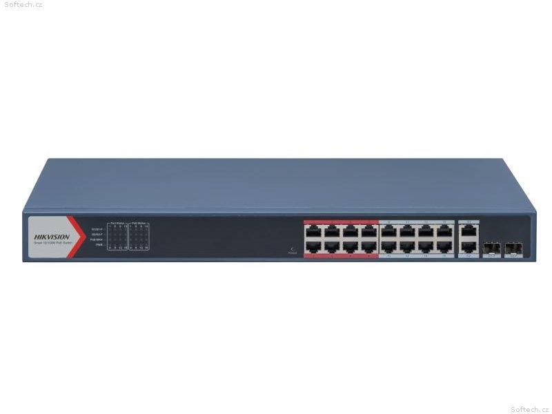 Porty: 16× 10/100 Mbps PoE port, 2× Gigabit combo RJ-45/SFP