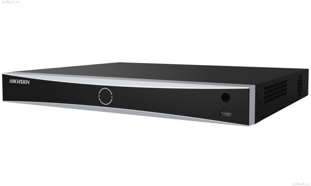Záznamové zařízení pro 16 IP kamer. Povoleny kombinace různých rozlišení do 12 Mpx a datový tok do 80/160 Mb/s (odchozí/příchozí). Předností je pokročilá analýza osob a vozidel s redukcí falešných alarmů a funkce rozpoznání obličeje. Zařízení podporuje také dekódování H.265+, díky kterému můžete ušetřit až 75 % datového objemu. K dispozici je jedna pozice pro SATA pevný disk s kapacitou až 16 TB. Aplikace Hik-Connect umožňuje snadnou správu sítě.