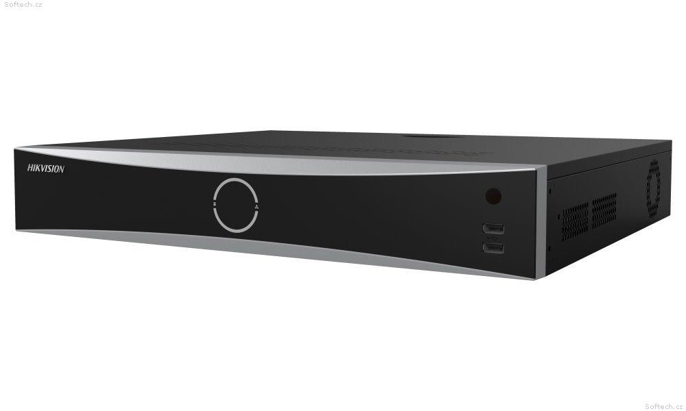 Záznamové zařízení pro 16 IP kamer. Povoleny kombinace různých rozlišení do 12 Mpx a datový tok do 160 Mb/s. Předností je pokročilá analýza osob a vozidel a funkce rozpoznání obličeje na 1 kanále ve streamu nebo rozpoznání a zachycení obrazu obličeje až na 4 kanálech. Zařízení podporuje také dekódování H.265+, díky kterému můžete ušetřit až 75 % datového objemu. K dispozici jsou 4 pozice pro SATA pevné disky s kapacitou až 16 TB/disk. Aplikace Hik-Connect umožňuje snadnou správu zařízení po síti.