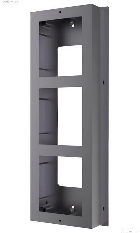 Povrchový montážní kryt pro dveřní stanice Hikvision. Je určen pro 3 základní moduly. Je kompatibilní s krycími plechy Bticino a Comelit. Montážní příslušenství je součástí balení.