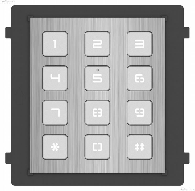 Typ modulu: kódová klávesnice, 12x tlačítko Rozhraní: 1x vstup (4pin), 1x výstup (4pin), 1x debug port Napájení: z hlavního modulu, spotřeba 1 W Krytí: voděodolnost dle IP65, antivandal dle IK07 Rozměry: 100 x 98,5 x 34,2 mm