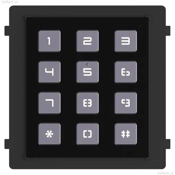 Typ modulu: kódová klávesnice, 12× tlačítko Rozhraní: 1× vstup (4pin), 1× výstup (4pin), 1× debug port Napájení: z hlavního modulu, spotřeba 1 W Krytí: voděodolnost dle IP65, antivandal dle IK07 Rozměry: 100 × 98,5 × 34,2 mm