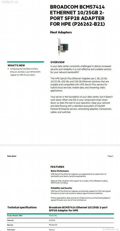 • HPE BCM 57414 10, 25GbE 2p SFP28 Adptr