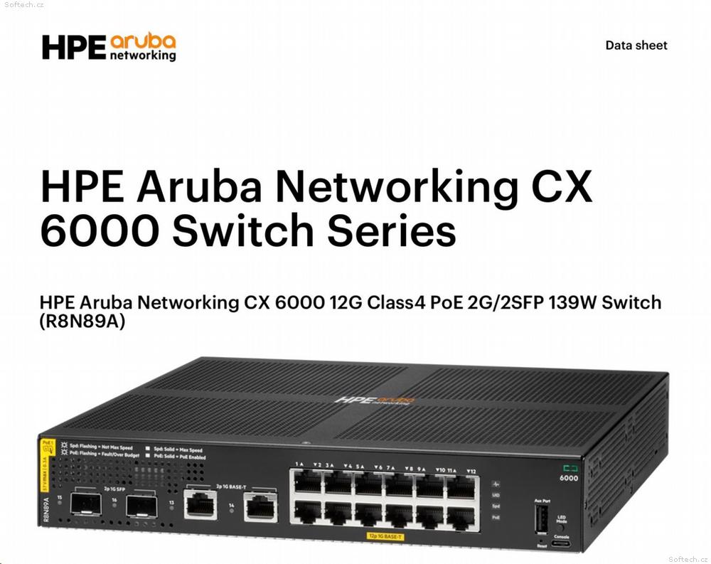• Aruba 6000 12G CL4 2SFP 139W Swch