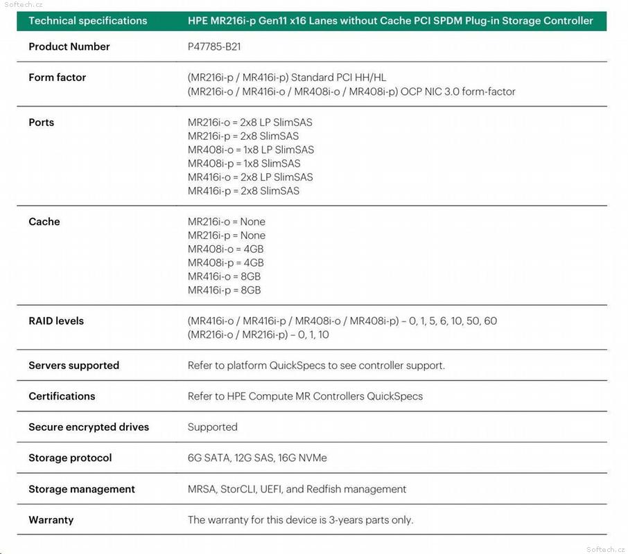 • HPE MR216i-p Gen11 16 Internal Lanes, No Cache SPD