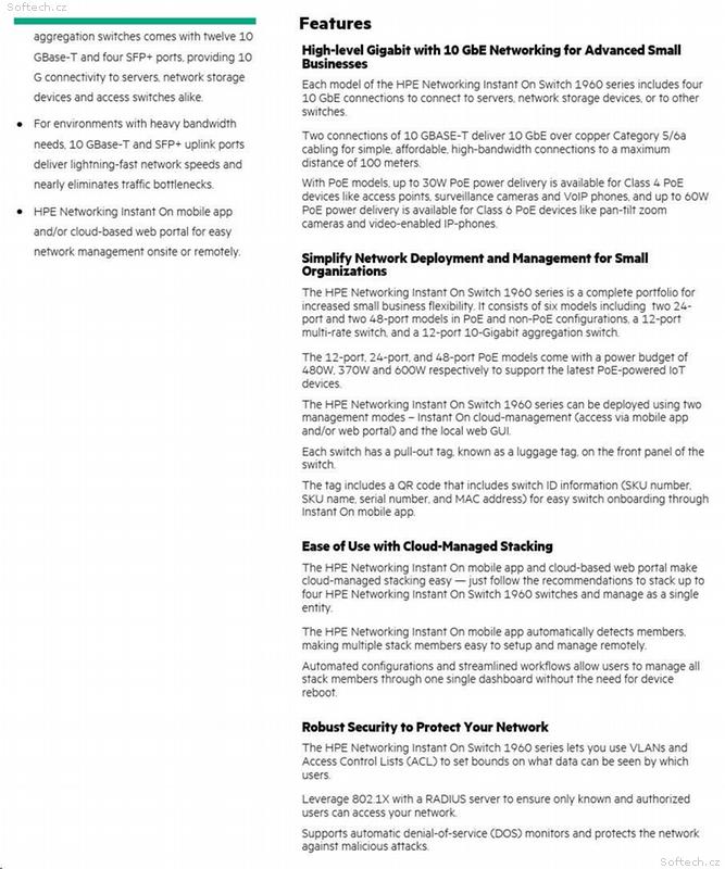 HPE Networking Instant On Switch 20p Gigabit CL4 4p Gigabit CL6 PoE 2p 10GBT 2p SFP+ 370W 1960 (JL807A)