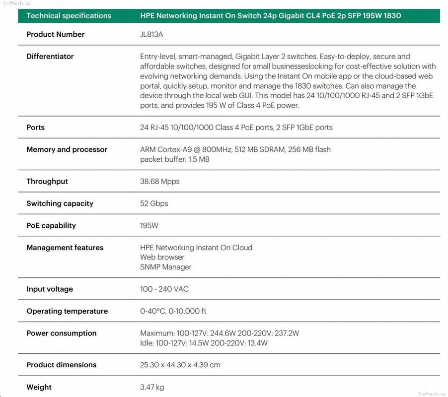 Aruba Instant On 1830 24G 12p Class4 PoE 2SFP 195W Switch (JL813A)