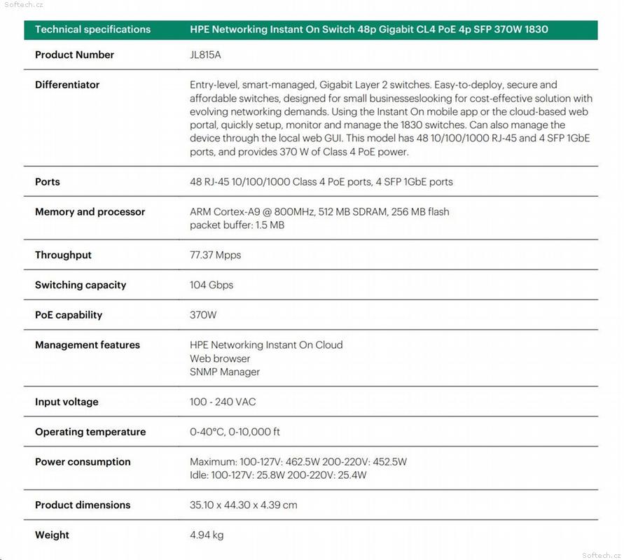 Podpora PoE: ano, 24× 802.3af/at (370 W celkem)