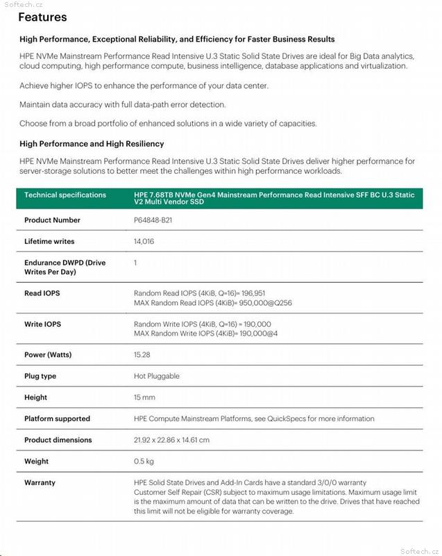 • HPE 7.68T NVMeRI SFF BC U.3ST V2 MV SSD
