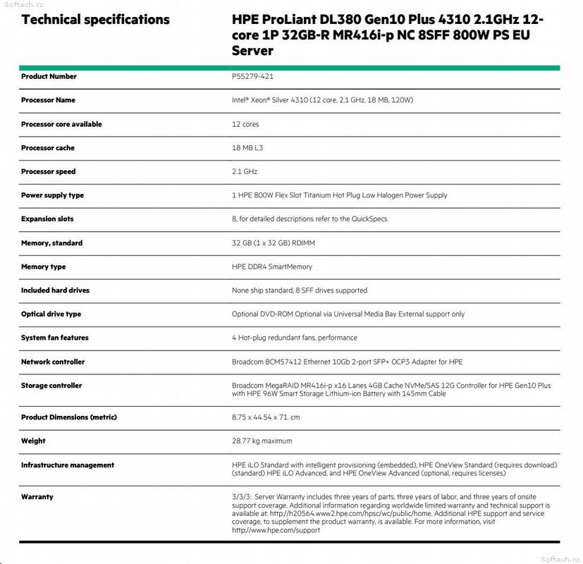 • HPE PL DL380g10 Plus 4310 (2.1, 12C) 32G MR416i-p,