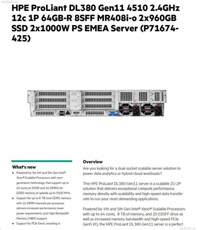 HPE DL380 G11 4510, 64GB, 2 x 960GB SSD, RPS