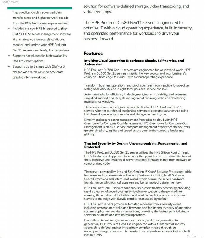 Vzdálená správa: HPE Integrated Lights-Out 6 (iLO 6), volitelně licence pro pokročilé funkce.