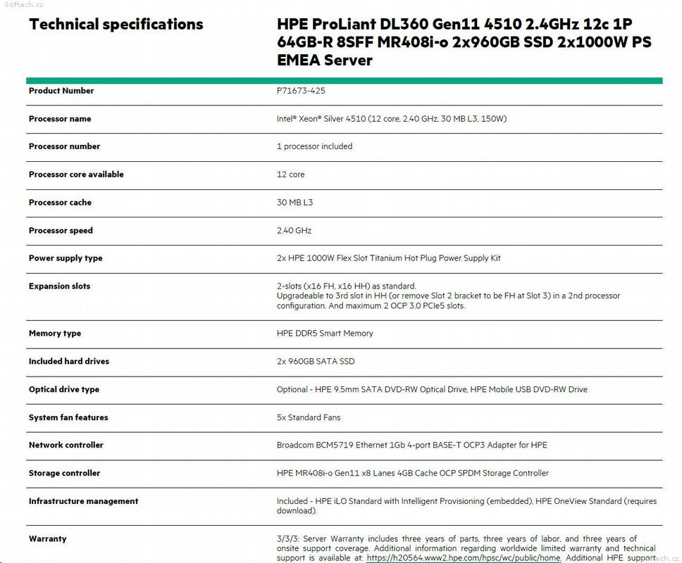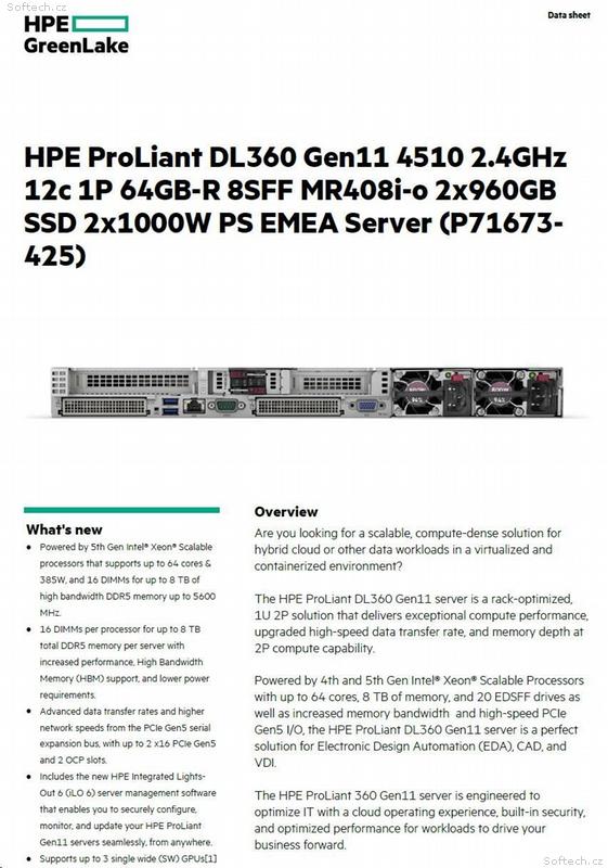 • HPE DL360 G11 4510, 64GB, 2 x 960GB SSD, RPS
