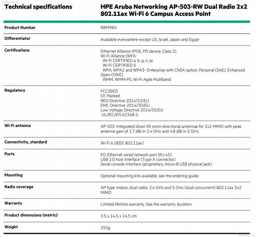 For more country-specific regulatory information and approvals, please see your Aruba representative.