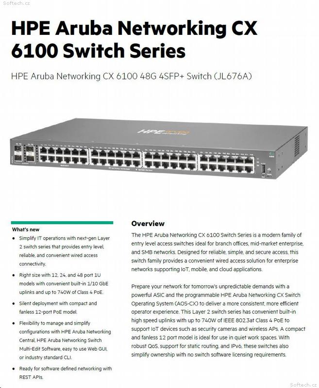 • HPE Aruba Networking CX6100 48G 4SFP+ Switch RENEW