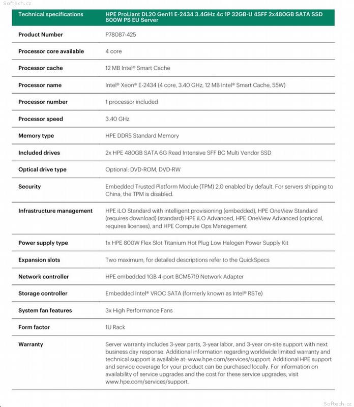 • HPE DL20 Gen11 E-2434, 32GB, 2 x 480GB SSD