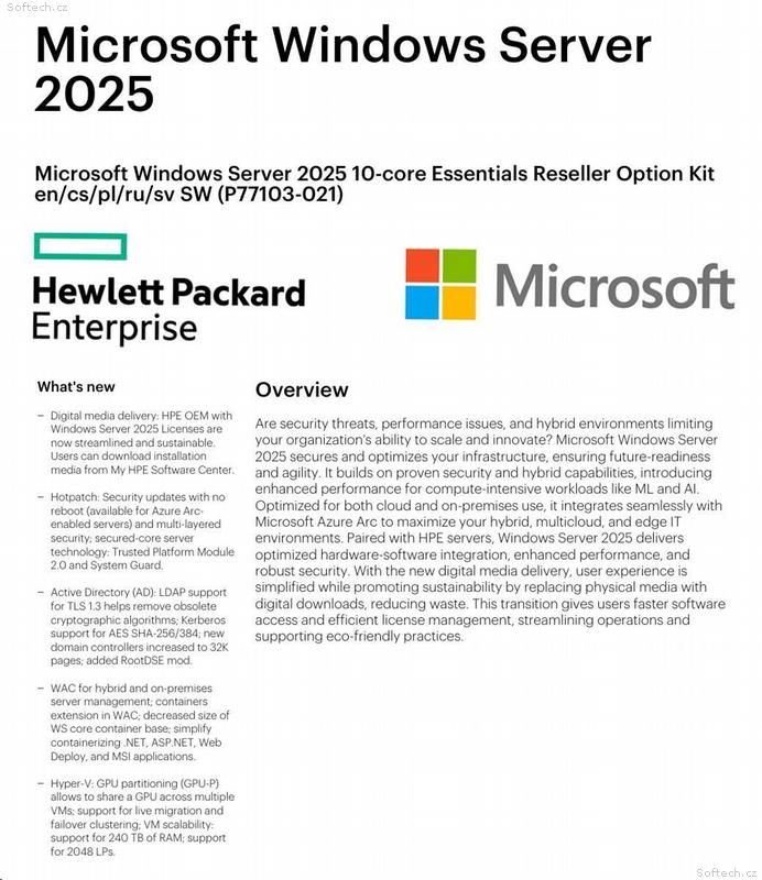 HPE MS WS25 10C Ess OEM CZ, ENG
