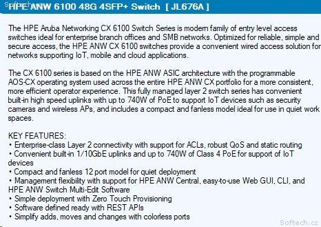 • HPE Aruba Networking CX6100 48G 4SFP+ Switch