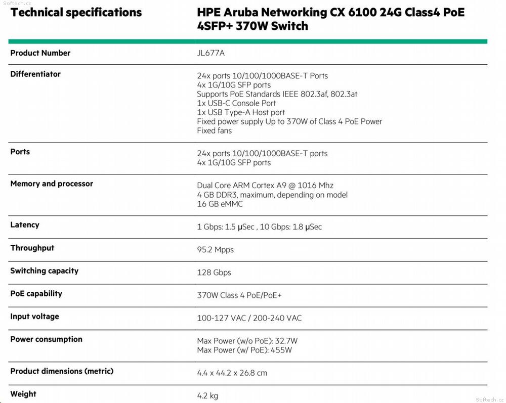 HPE Aruba Networking CX 6100 Switch Specifications