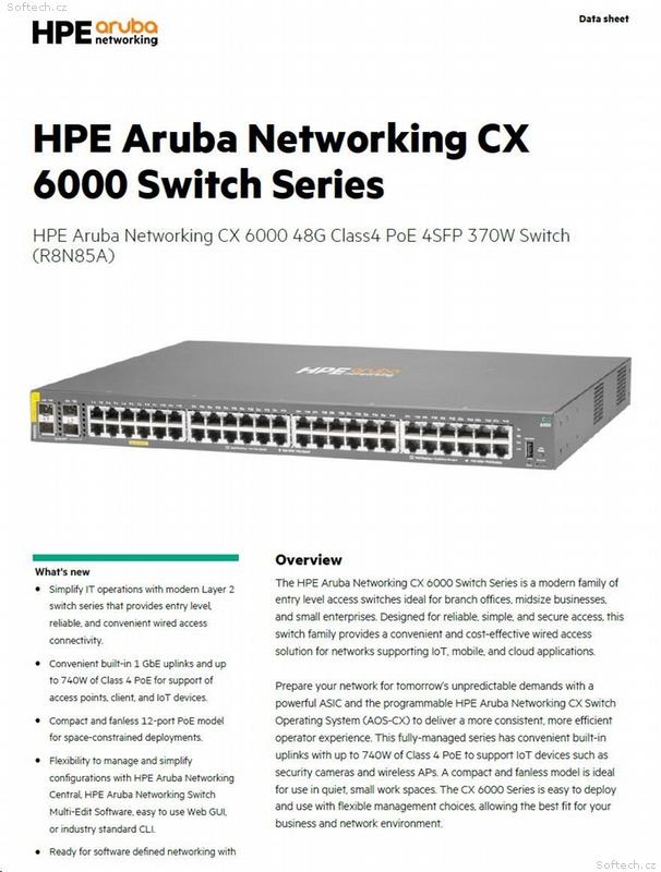 • HPE Aruba Networking CX 6000 48G Class4 PoE 4SFP 3