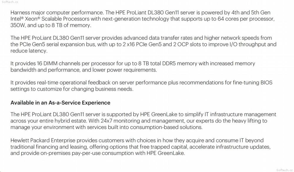 Server HPE ProLiant DL380 Gen11 využívá špičkové technologie a tak nabízí vysokou flexibilitu a výkon pro různé aplikace a použití.