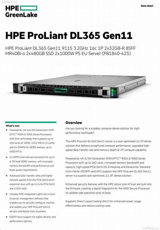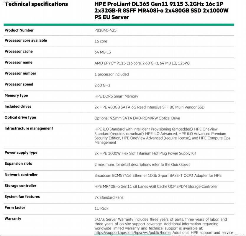 • HPE PL DL365g11 AMD Epyc 9115 (2.6-4.1, 16C) 2x32G