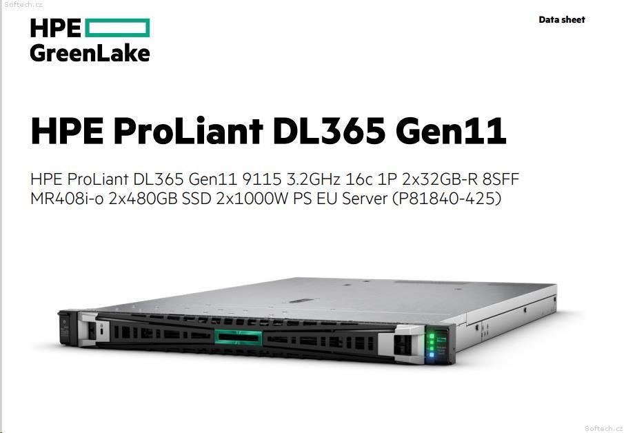 HPE PL DL365g11 AMD Epyc 9115 (2.6-4.1, 16C) 2x32G-6400 2x480G MR408i-o, 4G o2p10G-T 8SFF 2x1000W 1U Smart Choice