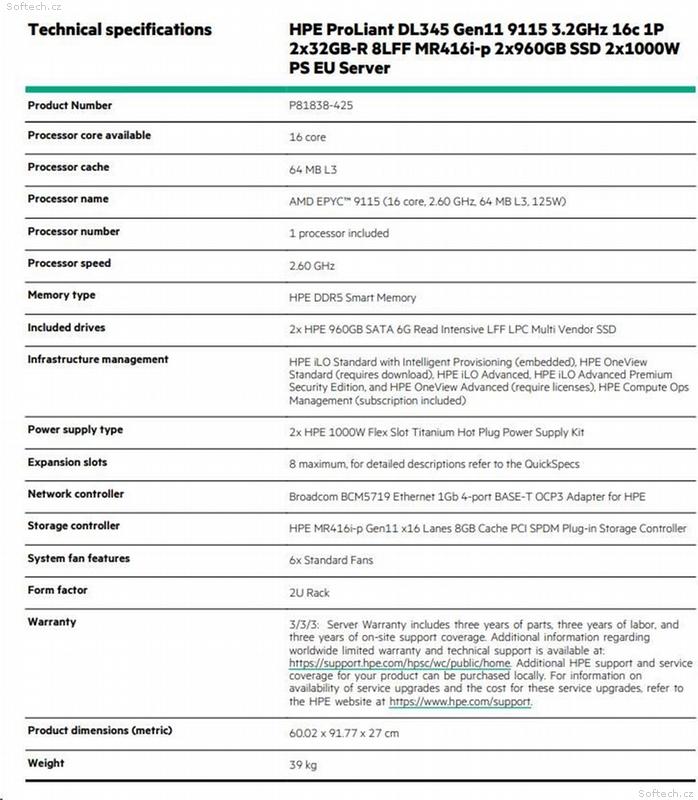 • HPE PL DL345g11 AMD Epyc 9115 (2.6G, 16C) 2x32G 2x