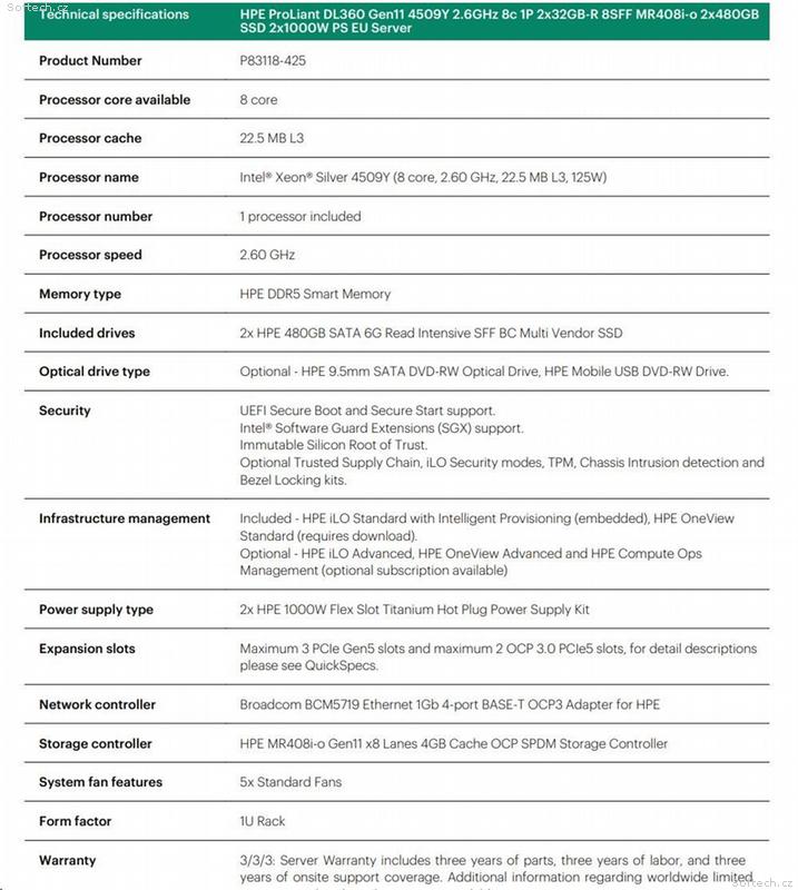 • HPE DL360 G11 4509Y, 64GB, 2 x 480GB SSD, RPS